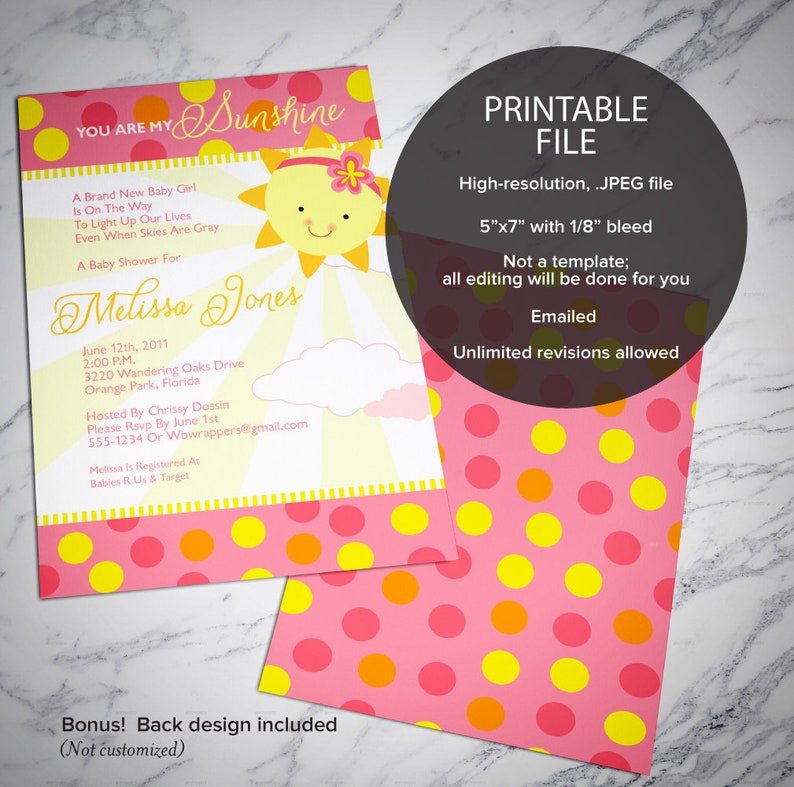 You Are My Sunshine Baby Shower Invitations : you are my sunshine invitations, baby shower invitations ... : All invitations are customized for you!. I am closed for the time being while making some changes to my shop. Baby shower invitations baby showers. Chevron decor, white ruffle cups, polka dot cake, chevron. My sunshine baby shower invitation (5×7″ or 4×6″). The downloadable template will be given to you in a clean slate, meaning you need to fill in the details of the invitation.